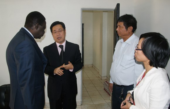 杨大使和我援乍医疗队长徐新华与乍卫生部长交谈